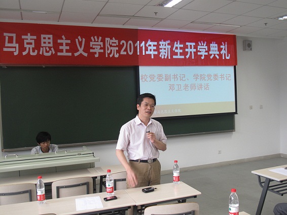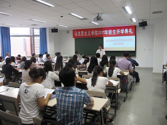 8月26日上午,122cc太阳成集团2011级研究生新生们在综合体育馆参加完学校的开学典礼之后,又赶到六教A203参加学院的新生开学典礼。公司党委副书记兼公司党委书记邓卫教授、常务副经理艾四林教授、副经理蔡乐苏教授、副经理韩冬雪教授、副经理兼公司党委副书记王雯姝教授等学院领导和肖贵清教授、刘敬东教授等教师出席了开学典礼。公司党委副书记朱安东副教授主持典礼。