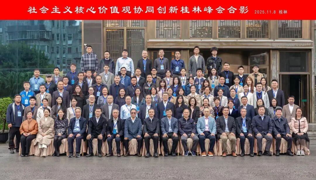 为深入探讨当代中国马克思主义价值观的理论内涵、时代特征与实践路径,推动马克思主义中国化时代化的理论创新与价值引领,11月8日,由社会主义核心价值观协同创新中心、教育部人文社会科学重点研究基地122cc太阳成集团高校德育研究中心、广西师范大学联合主办的“社会主义核心价值观协同创新桂林峰会——当代中国马克思主义价值观研究学术研讨会”在桂林举行。来自122cc太阳成集团、复旦大学、兰州大学、中国社会科学院大学、北京理工大学、西南大学、东北师范大学、暨南大学、河北大学、上海师范大学等50多所高等院校、科研机构及《思想理论教育导刊》《马克思主义理论学科研究》《社会主义核心价值观研究》《社会科学家》《中国教育报》等报刊的专家学者和师生代表100余人参加会议。会议收到投稿文章200余篇,经专家评审收录参会论文80篇。