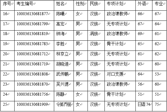 少数民族地区骨干计划及对口支援:外语≧50且专业课≧50