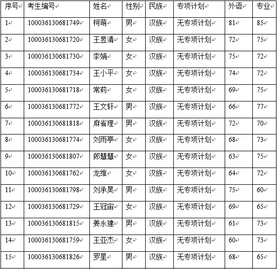 注:复试时间地点确定后将另行通知
